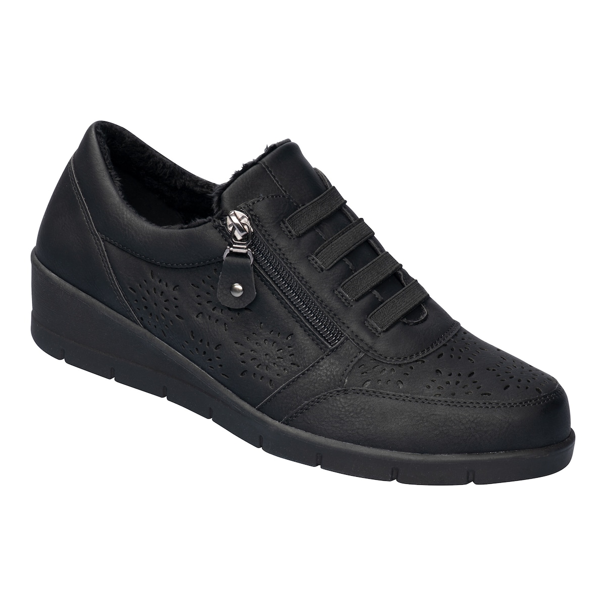 Der unkomplizierte Schuh für die kalte Jahreszeit: Warm, bequem und modisch zugleich, überzeugt er mit kuscheligem Futter und trendiger Lochmuster-Optik. Mehr noch: Dank elastischer Schnürung und seitlichem Reißverschluss schlüpfen Sie ruck, zuck hinein und genießen einen perfekten Sitz. Die extra weite Passform bietet auch breiteren Füßen Komfort. Mit rutschhemmender Laufsohle.